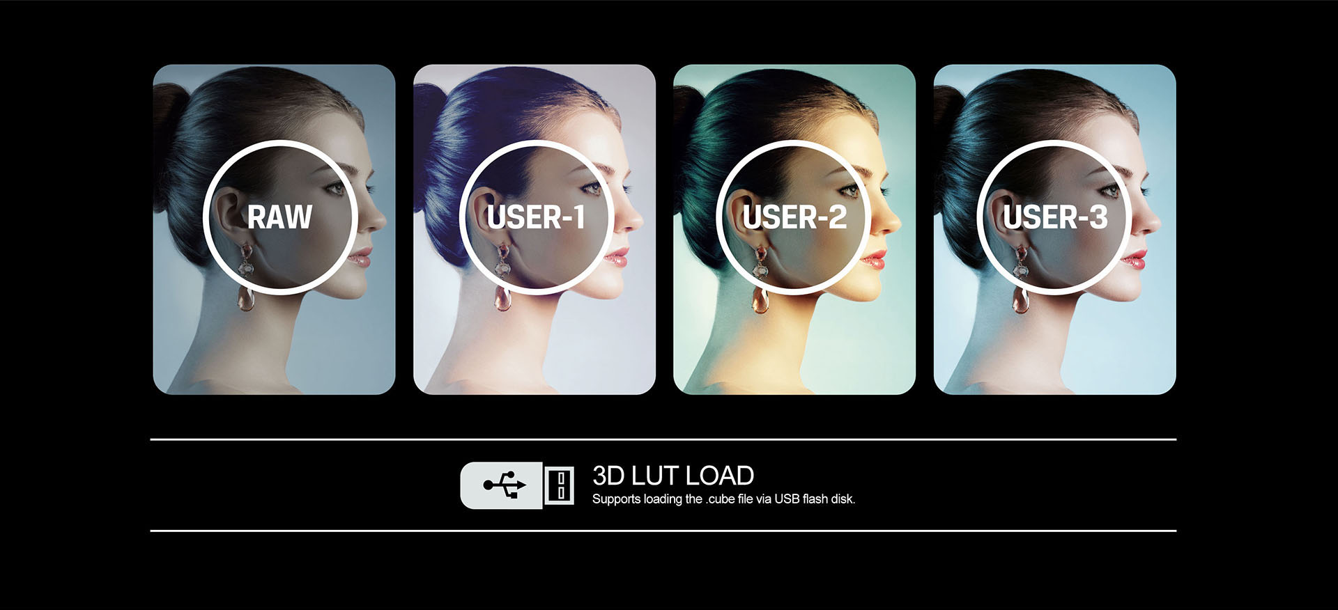 | Look up table (LUT) support | 3D LUT (.cube format) |
