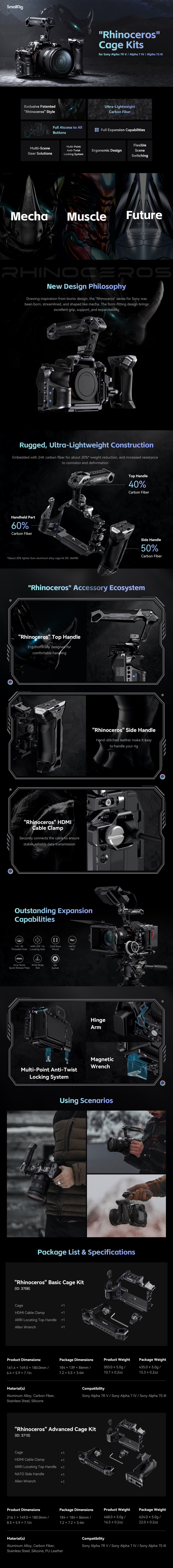 SmallRig "Rhinoceros" Basic Cage Kit for Sony Alpha 7R V / Alpha 7 IV / Alpha 7S III 3708 is designed to facilitate low-angle shooting, protect the camera, and provide accessory mounting points. The kit includes a cage, a top handle, and an HDMI cable clamp. Both the cage and the top handle are portable for being made of lighter carbon fiber, hence longer…