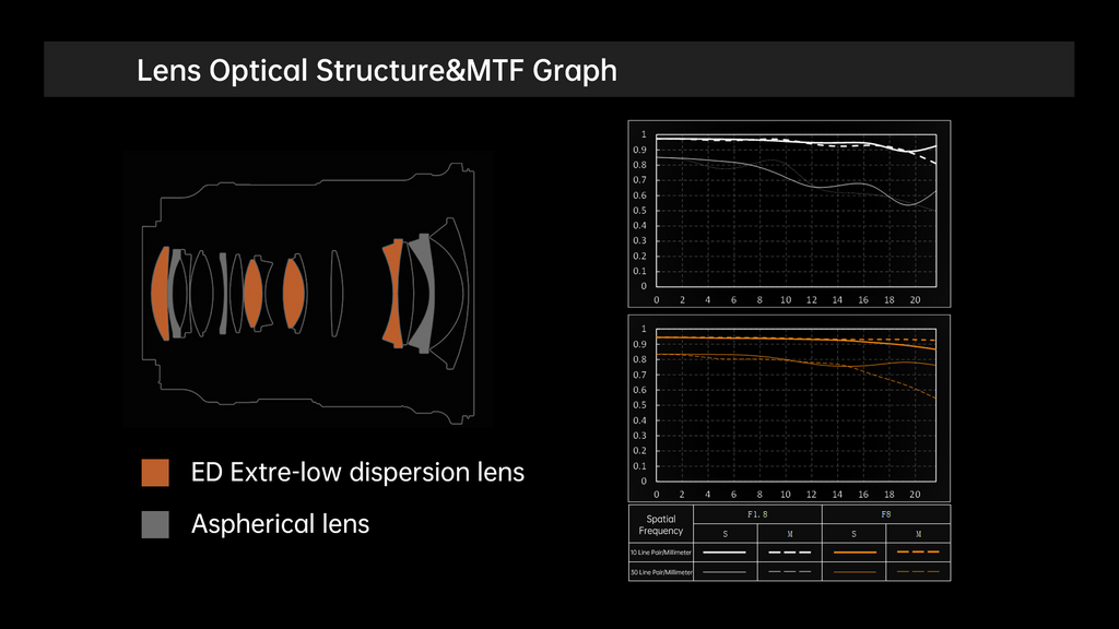 AF 16mm F1.8 Z uses an optical lens structure of 15 elements in 12 groups, with three built-in aspherical lenses, creating a high-definition image experience.