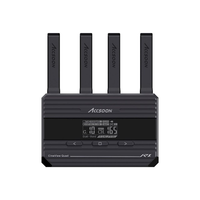 Accsoon CineView Quad is a SDI&HDMI Dual-Band (2.4GHz & 5GHz) wireless camera video transmitter and receiver system featuring unique foldable antenna design. It transmits and receives HD video and HQ audio through Accsoon’s uniquely patent Dual-Band transmission technology. With Dual-Band transmission technology, CineView Quad can stream datas over a range of 150m(500ft) with near-zero latency.
