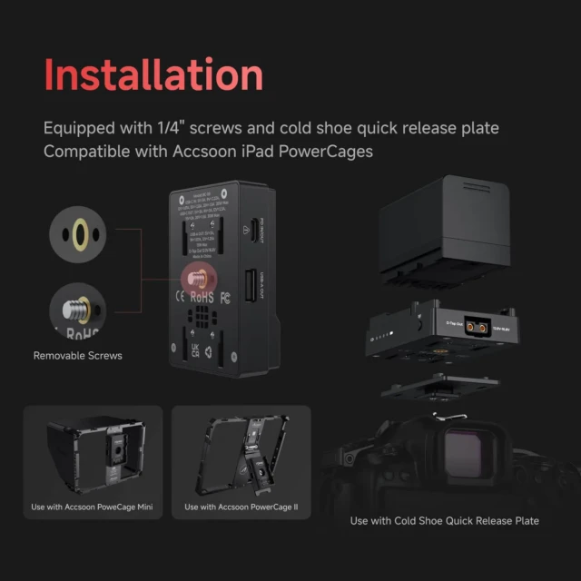 Constructed from durable ABS material and weighing only 49.1 g, the ACC-BC-08 is perfect for lightweight rigs, handheld shooting, gimbal setups, and mobile workflows. Clear usage guidance ensures stable power delivery when switching batteries or using OTG-enabled devices.