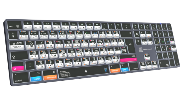 The Adobe Photographer Shortcut Keyboard is a 2-in-1 keyboard. It works with two of the most popular Adobe applications for photographers – Photoshop CC and Lightroom CC – providing you with more than 190 shortcuts in a single keyboard. The Adobe Photographer Keyboard makes it easy to switch between the applications and still have all the important shortcuts right at hand. This Logickeyboard is your number one choice when working with image processing in Adobe. The shortcut commands labeled on the keys, and their color-coded definitions makes you a Master of editing in no time. The Logickeyboard is ideal for photographers, and everyone else working diligently with photography and image editing.