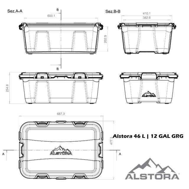 Compared to the containers traditionally present in the market, the Polypropylene-based Zero Energy compound gives Alstora containers extreme resistance to impacts, falls and pressures. The gasket on the lid, together with the super strong latches securing the lid to the base, provide an air- and water-proof seal making the containers weather/dust/mold/parasites and odors resistant.