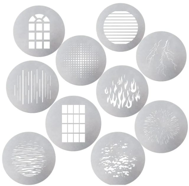The Aputure AP-10GOBOKIT is a 10-piece Gobo Kit designed for use with Aputure's Spotlight Mount, allowing filmmakers to creatively shape and design light. With ten different classic gobo patterns, this kit offers a versatile way to add texture and depth to your lighting setup.