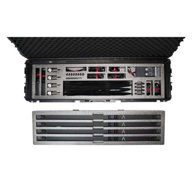The INFINIBAR PB12 4-Light Kit includes 4 of these pixel bars. Their features include the ability to connect several INFINIBARs of different lengths using different types of connectors (the INFINIBAR 4-Light Kit includes 4 straight connectors, other types are available separately) and to create creative shapes and effects. The 96 RGB pixel light zones provide smooth pixel effects. The 4-light Kit not only expands INFINIBAR's capabilities by four times the amount of light, but also includes additional power cords, adapters and light grids housed in a rugged hard case.