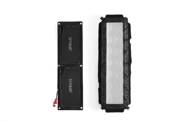 NFINIMAT light panels are designed to be seamlessly attached to an inflatable softbox of the same size using a Velcro system. Once inflated, the softbox has enough strength to hold the panel, light grid and light screen together, even when the unit is placed upside down or mounted on stands. Using a small air pump (included), the diffuser can be quickly and easily inflated.