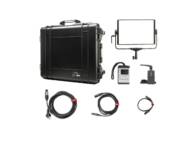 The Aputure Nova P300c Kit comes with a carrying case with precision-cut foam to safely store the panel, control unit, and accessories. It’s also compatible with both AC (100-240V) and DC (24-48V) power, allowing for mobile use with block batteries or power stations. The panel is built with a lightweight aluminum construction, weighing just 10.35 kg, and features active cooling to ensure stable operation during extended use.