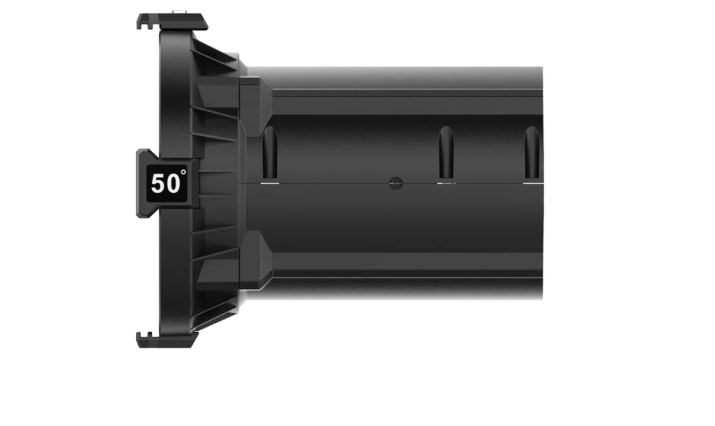 The Spotlight Max is available in three lens options: 19°, 36°, and 50°, allowing for flexible control over your lighting projection needs. The 19° lens provides a narrow, focused beam for tight spotlight effects, while the 36° and 50° lenses provide wider coverage for more expansive lighting applications. With the internal baffles, you can shape and control the beam precisely, ensuring that you get the exact look and feel you want for your lighting setup.