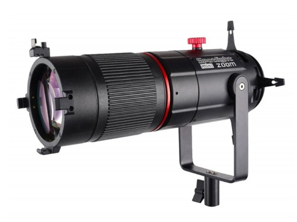 The Aputure Spotlight Mini Zoom for LS 60d and 60x is a professional 2× optical projection lens with a variable 15–30° beam angle, built-in shutters, drop-in iris, and M-size gobo support, enabling precise and repeatable light shaping for film, broadcast, and studio productions.