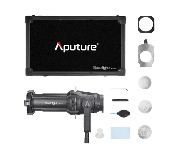 The Aputure Spotlight Mount Set 19° is a professional projection accessory designed for precise light direction and creative control. With a focused 19° beam angle, it produces sharp, bright lighting effects that are ideal for detailed scene illumination, product photography, and dramatic lighting accents. High-quality optics ensure clean projections without chromatic aberration, preserving accurate color reproduction and edge clarity.