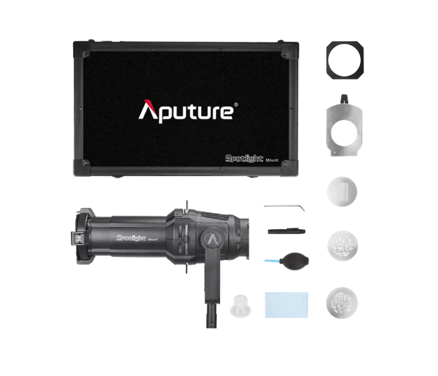 The Aputure Spotlight Mount Set 36° provides precise light shaping with a 36° beam angle, clean edges, and interchangeable lenses for professional studio and location work. Compatible with Bowens mount LED lights, it’s ideal for creative lighting setups and long-term use.