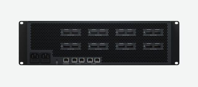 The massive 4 M/E Plus model has 64 standards converted SMPTE-2022-7 inputs using 8 sets of dual redundant 100G Ethernet connections. You also get 48 SMPTE-2022-7 outputs, 16 ATEM Advanced Keys, 4 multi-views and 2 SuperSource for a total of 12 DVEs.