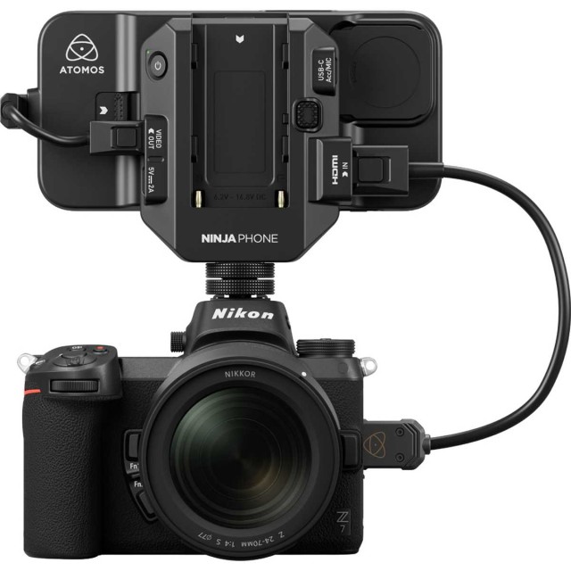Now your iPhone can be a Ninja too! Ninja Phone is an add-on for iPhone 15/16 Pro and Max that allows you to record and preview 10-bit video from professional cameras and camcorders with HDMI output. It uses the superior OLED display of Apple phones as a latency-free viewfinder including professional monitoring features! It records to Apple ProRes or H.265 formats and allows you to use your phone's connectivity for live streaming and camera-to-cloud workflow. Dedicated app controls Ninja Phone and iPhone and is compatible with both vertical and horizontal phone orientation.