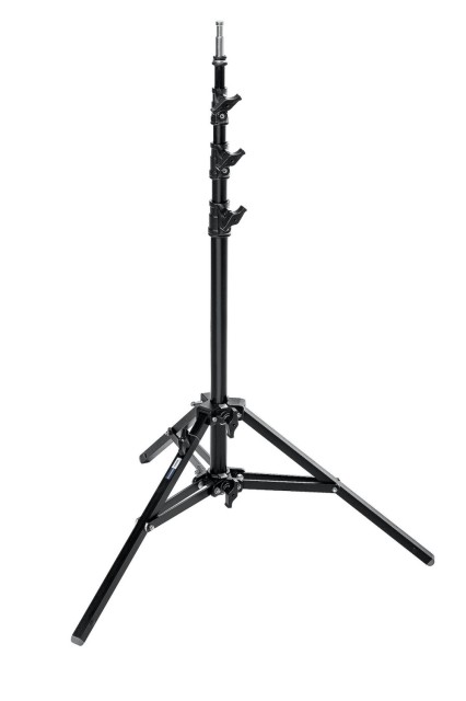 A unique feature is its single leveling leg, which allows stable setup even on uneven surfaces. The stand comes with a 5/8" (16 mm) top extension for easy mounting of compatible fixtures. Its base diameter of 87 cm ensures stability, while square cross-section steel legs provide extra rigidity. Lightweight at 2.55–3 kg, the A0025B is easy to transport, and the 87 cm folded length makes it convenient for storage and travel. Well-equipped for professional studio or location work, this aluminum stand is both durable and versatile.
