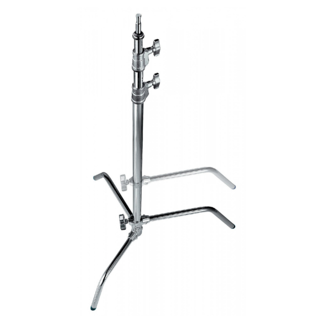 Turtle base chrome plated steel stand with 3 sections and 2 risers. It features one sliding leg so you can use the stand on uneven surfaces. This stand has a maximum payload of 10kg and maximum height of 2.53m. The stand is also available in black.