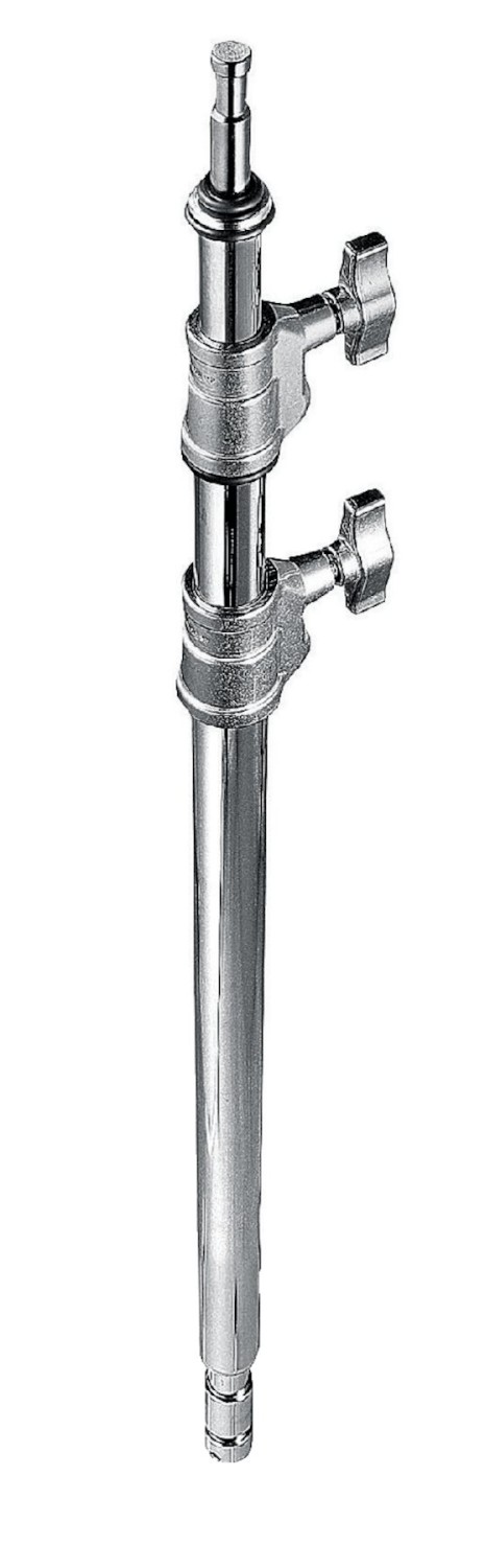Chrome steel three section column rising from 60cm to 139 cm (26.8in to 54.7in) with a 16mm female top attachment and 28mm female bottom receiver