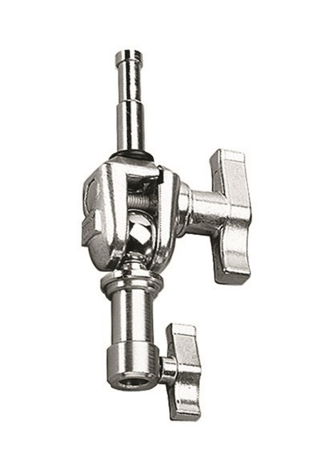 This Avenger F830 Junior to Baby Swivel Pin adds articulation to your stand or boom. One end slips onto a male 5/8" pin while the other supports a light or accessory with a 5/8" receiver. The ball joint allows 180° swivel of the fixture, while the large handle provides secure locking in the chosen position. The barrel at the receiver end measures…