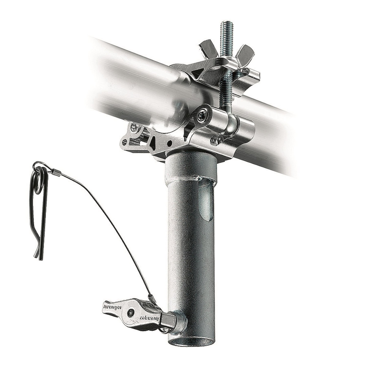 The Avenger C465-1 LP Eye Coupler with 28mm bushing is a heavy-duty aluminum clamp designed for professional rigging applications. Featuring a 1 1/8" (28mm) receiver and high load capacity, it provides secure and reliable mounting on trusses, round tubes, and gratings.