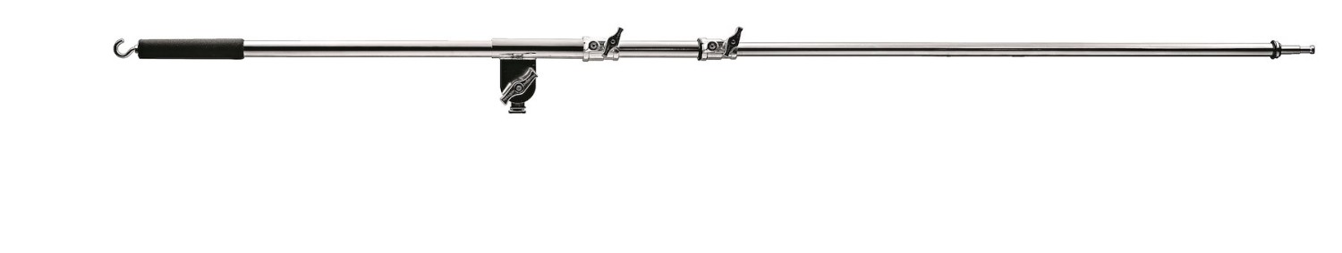 This mini boom arm extends from 117cm to 212cm. It allows you to position your lights in the most difficult positions. It has a strong steel counterweighted for smooth operation and stability. The boom is also provided with a hook for a counterweight .