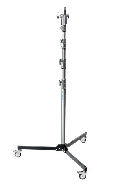 The Avenger A5034 Roller Stand 34 with Folding Base is a heavy-duty professional mobile stand designed for maximum stability and smooth mobility. Featuring a four-section steel construction, folding base, and rolling wheels, it supports heavy equipment while remaining easy to reposition on set.