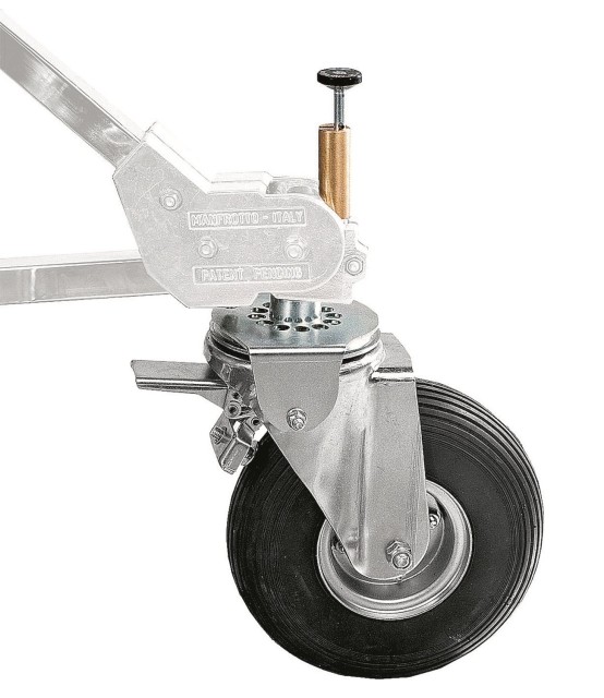 Designed for professional studio environments and demanding location work, the rubber padding ensures smooth movement across a wide range of surfaces while minimizing vibration and floor damage. The swivel mechanism features 12 locking positions, allowing precise positioning and directional control when maneuvering heavy equipment.