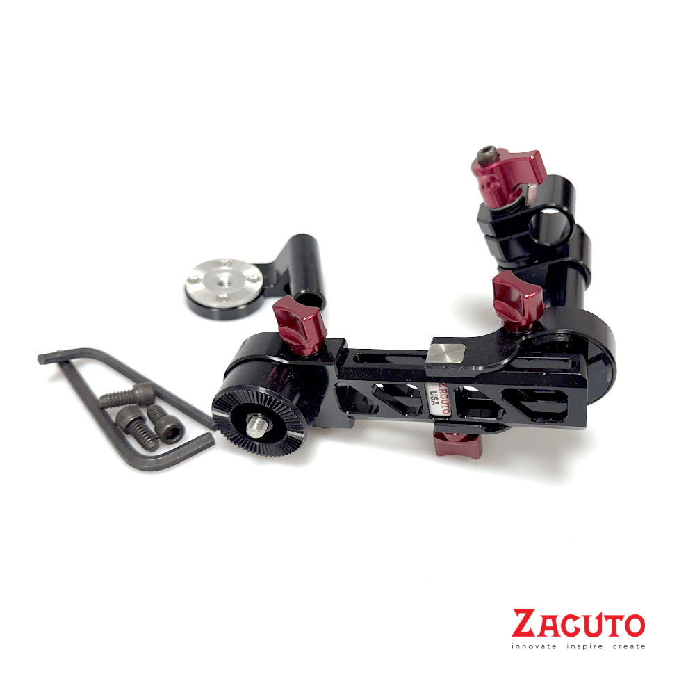 Designed to attach to the FS5 Top Plate, it leaves plenty of room at the lens for focusing and will work with the widest of lenses. It can easily be adjusted with one hand while the rig is on your shoulder. The Axis Mini has extensive articulation for use in a variety of positions, both shoulder mounted in a Next Generation Recoil or in tripod operating position. It is very small and quick to install and remove.