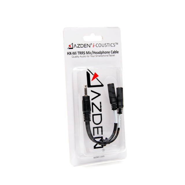 The Azden® i-Coustics™ HX-Mi TRRS Mic/Headphone Cable is designed to make your Azden microphone compatible with your mobile devices. Just plug your Azden microphone into the HX-Mi mic input and attach the cable to the microphone/headphone jack of your device. Plug your headphones into the headphone input of the HX-Mi to listen to your recordings. The HX-Mi works with any device with a TRRS jack, including iPhone® 3/4/5/6, iPad® (3rd generation and newer), Samsung Galaxy S® 3/4/5, Galaxy Tab® 3 and most Android™ devices.