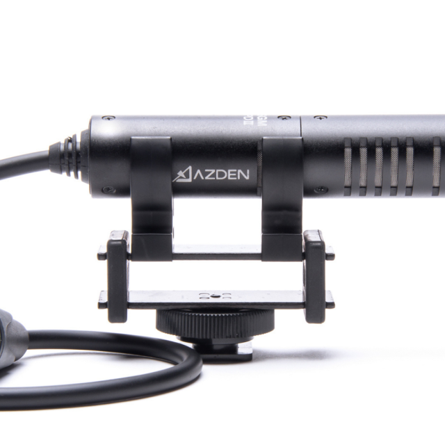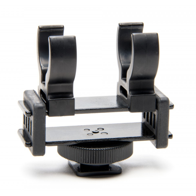 Shock-mount microphone holder with integral shoe stand. For Azden SMX-10, SGM-990+i, ECZ-990.