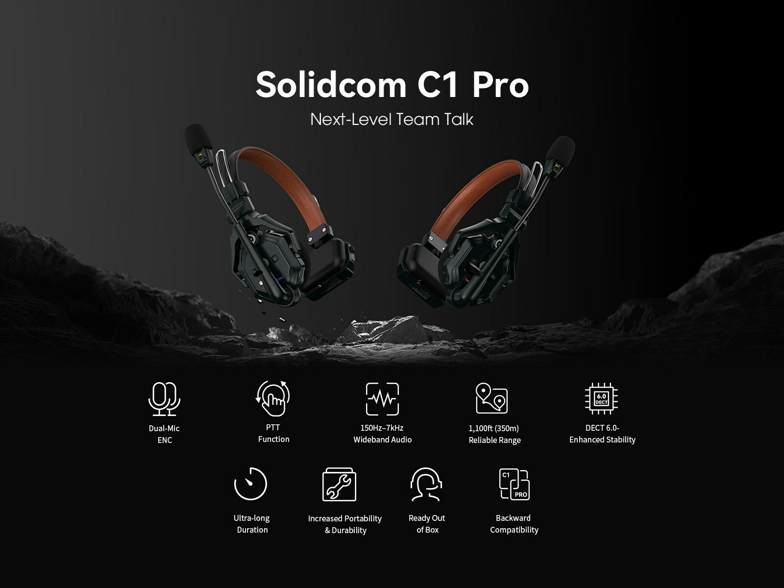 The Solidcom C1 Pro, Hollyland's first-of-its-kind full-duplex wireless intercom headset system featuring dual-mic Environmental Noise Cancellation (ENC) technology, is incredibly lightweight and easy to use. It is a true game changer with built-in ENC, ideal for production teams working in loud environments where exceptional communication clarity is essential. This new-generation headset system features advanced DECT 6.0 technology, a wideband audio range of 150Hz to 7kHz, and a reliable LOS communication range of up to 1,100ft (350m).
