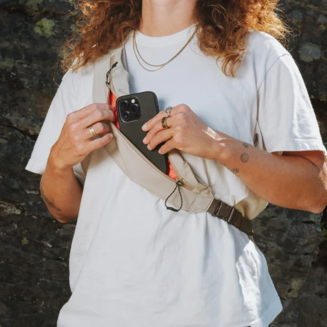 Designed to be carried on the back with the option to quickly flip it to the front as a sling bag. The detachable strap can be attached on either side, so you can choose your dominant side.