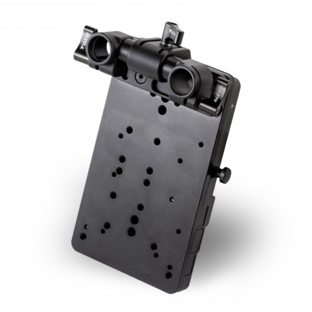 This battery plate for the Panasonic EVA1 is designed to be used in conjunction with the Tilta Camera Cage for Panasonic EVA1. It allows you to use a V-mount battery to provide greater battery life for your camera and also allows you to power external accessories via the battery plate's P-tap and DC power outputs. You can mount the plate to your 15mm LWS rod system with the 15mm LWS rod adapter. This adapter can be attached to the top or bottom of the plate to allow you to mount it in whatever orientation you please.
