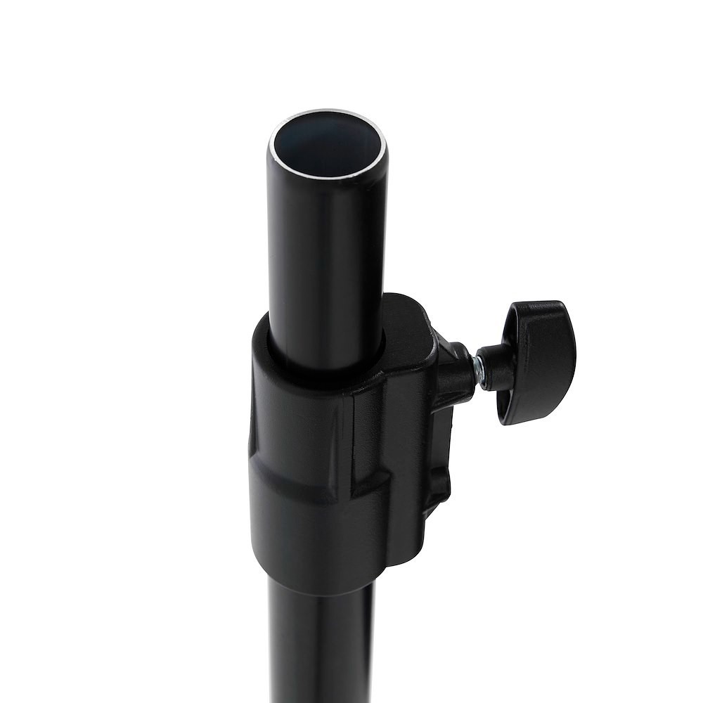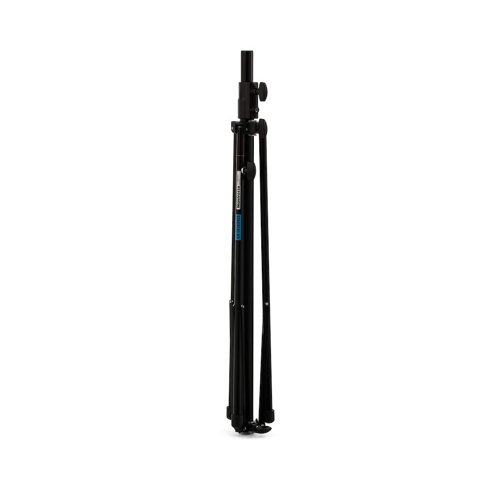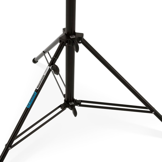 The Manfrotto 126BMUAC combines air-cushioned safety with smart leveling in a black-anodized aluminum frame. Two sections (40/35 mm) deploy smoothly to 218 cm via finger-safe risers, while double-braced round legs (Ø22 mm) and a wide footprint ensure zero flex under 30 kg loads (10 kg fully extended). The 35 mm male spigot accepts large fixtures or speaker adapters, and a single levelling leg adjusts ±15° for slopes. At 106 cm collapsed, it’s the ideal balance of height, strength, and portability for HMI, LED panels, or PA speakers in film, events, or photography—air cushioning protects gear and fingers during descent.