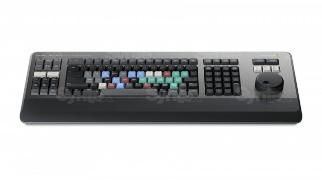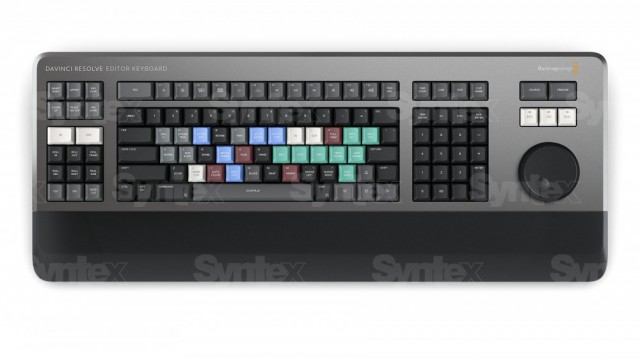 The DaVinci Resolve Editor Keyboard has been designed for maximum editing efficiency with the ability to quickly browse and search for material using the integrated search wheel, without the need for a mouse.