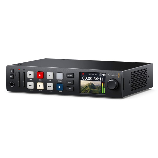 HyperDeck Studio features traditional deck style transport controls, including a search dial for jog, shuttle and scroll. The LCD includes monitoring for video, plus audio level meters, selectable between technically accurate VU or PPM ballistics. The combination of familiar VTR style controls with the built in LCD screen makes HyperDeck Studio incredibly fast to use and very easy to learn.