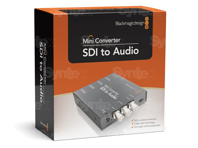 Includes everything you need to de-embed 4 channels of analog audio or 8 channels of AES/EBU digital audio from any SDI video connection. Now you can easily access the audio in any SDI video connection for output to audio equipment such as audio mixers, analog broadcast decks, audio monitors and more!