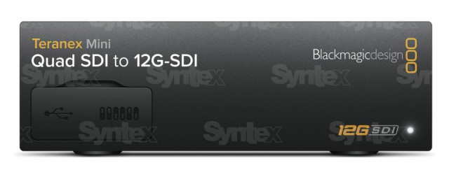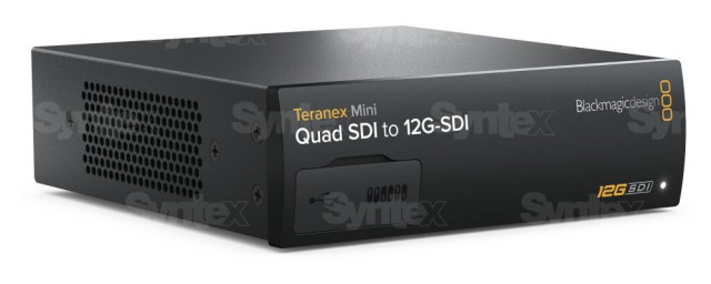 Teranex Mini Quad SDI to 12G-SDI converts Quad Link SDI to 12G-SDI so customers can connect Quad Link Ultra HD equipment to the latest 12G-SDI Ultra HD equipment. This model allows equipment that uses four BNC cables to be connected using a single 12G-SDI BNC cable for connecting to the latest routers, switchers, projectors and more!