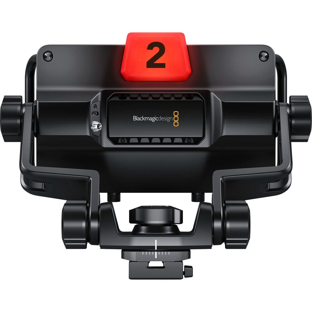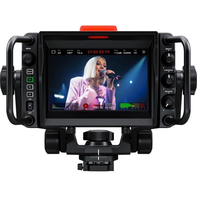 A bright 7-inch touchscreen, sunshade, DisplayPort, adjustable mount, and controls for brightness, contrast, and focus peaking. Turn your URSA Cine into a live production camera with digital film quality!