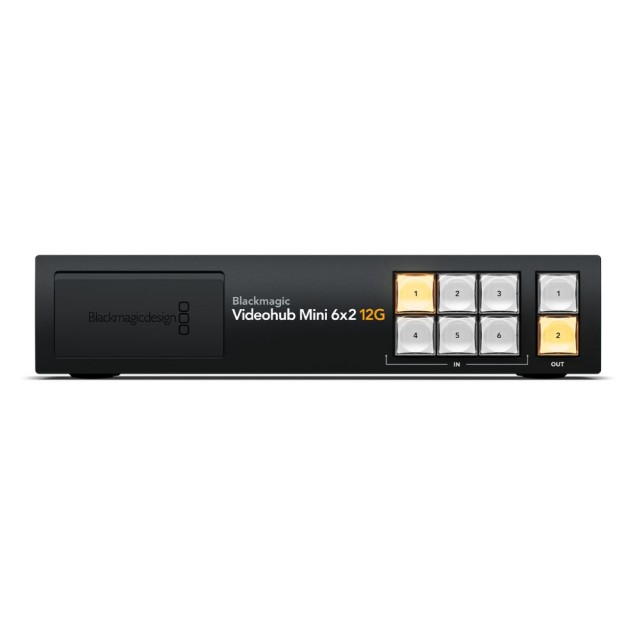 The Blackmagic Videohub Mini 6x2 12G is a compact, zero-latency video router that supports any combination of SD, HD and Ultra HD signals simultaneously.