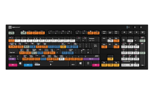 Slimline Logickeyboard designed for Blender. Made for Windows PC. This Logickeyboard is your number one choice when editing in Blender. The shortcut commands labeled on the keys, and their color-coded definitions makes you a Master of controlling Blender in no time. The Logickeyboard is ideal for 3D modeling studios, professional graphics environments, and everyone else working diligently with Blender.
