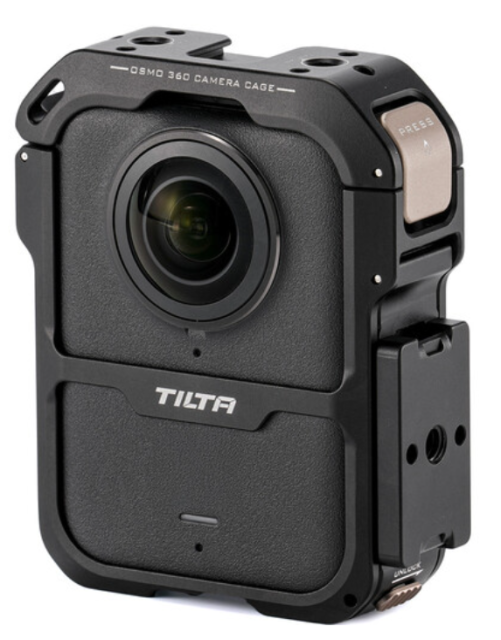 The Tilta TA-T89-A-B is a rugged yet sleek protective cage and mounting solution specifically engineered for the DJI Osmo 360 360° action camera. Precision-machined from magnesium and aluminum alloy with stainless steel hardware, this form-fitting cage installs in seconds via a tool-free quick-release system while preserving complete access to all ports, buttons and the battery door. It adds a cold shoe receiver, an anti-twist 1/4"-20 threaded point, a dedicated horizontal mounting plate and a strap slot that accommodates the included wrist strap.