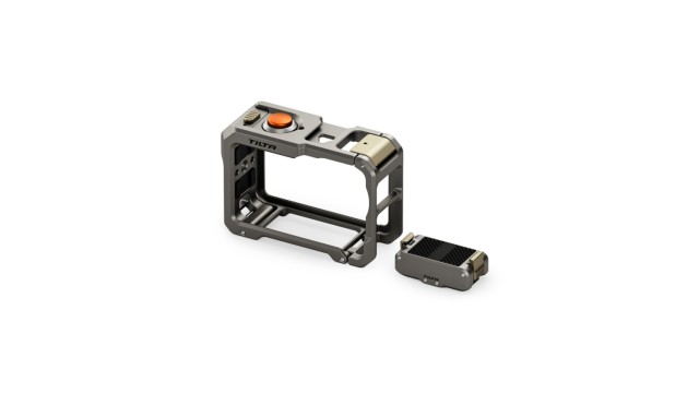 Sada obsahuje magnetickou základnu, kterou lze připevnit v obou směrech a která podporuje další příslušenství se závitem 1/4″-20, což nabízí flexibilitu pro různé konfigurace natáčení. Horní část klece obsahuje ergonomické prodloužení tlačítek pro snadný přístup k funkcím napájení a nahrávání, zatímco slot pro kartu a dvířka baterie zůstávají volné pro rychlou výměnu.