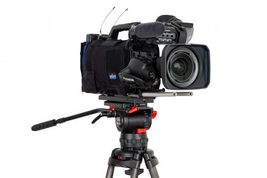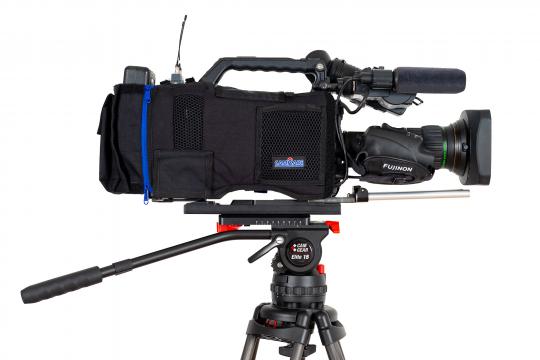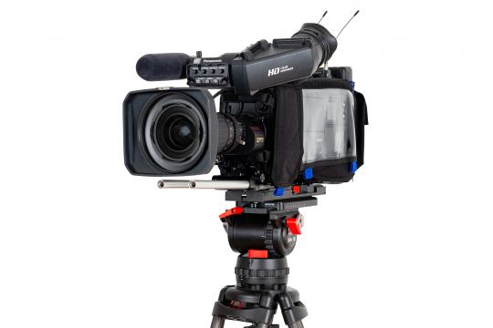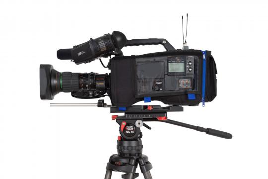 The camRade camCover P2 is a black, custom-fit protective cover that fits specific models of Panasonic ENG-style shoulder cameras. It protects against scratches resulting from daily wear and tear, increases the lifespan of the camera body, and ensures it remains in perfect condition. The built-in camRade rainProtector helps you protect your camcorder whenever the weather turns, or dust is kicked up. The camCover P2 is an absolute must-have that can prevent damage to your most valuable piece of equipment. The camCover is designed and suitable for shoulder camera work but is also great while your camera is attached to a Panasonic (SHAN) VCT -plate, tripod, pedestal, or any other camera support solution.