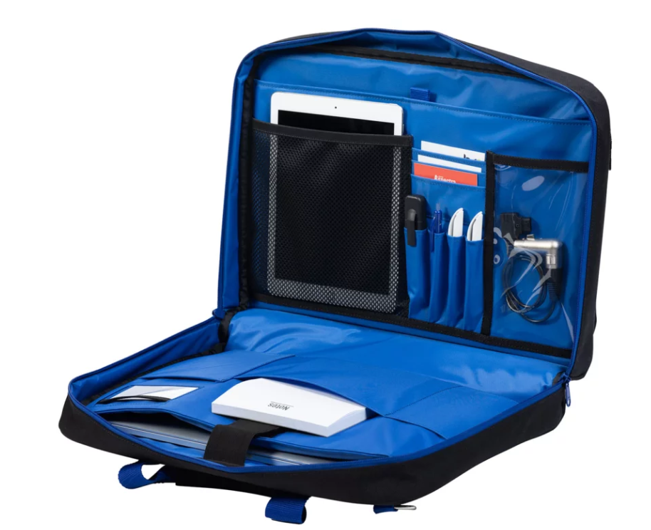 Soft padded interior with multiple pouches and mesh pockets for organization