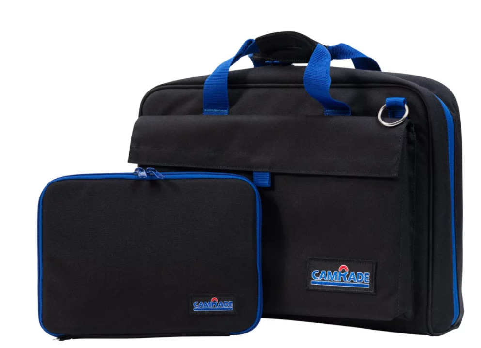 The camRade comPanion is a professional-grade briefcase tailored to keep all your essential production gear safe, organized, and easily accessible. Made from rugged 1000 denier black Cordura® fabric with water-resistant properties, the bag offers maximum protection through its padded construction and high-quality YKK® zippers. Inside, a soft padded blue nylon interior features multiple practical pouches and mesh pockets for tools, documents, and small items, while a large padded compartment with elastic hook-and-loop fastener securely holds your laptop. A dedicated tablet compartment further enhances organization. Designed for frequent travelers, the comPanion includes a zipper pouch on the back that slides effortlessly over trolley handles, plus padded suede handles and a removable, adjustable shoulder strap for optimum carrying comfort. Flight-approved dimensions ensure hassle-free carry-on for commercial airline travel. Whether on set, in meetings, or on the go, the camRade comPanion keeps your gear protected, organized, and ready for action.