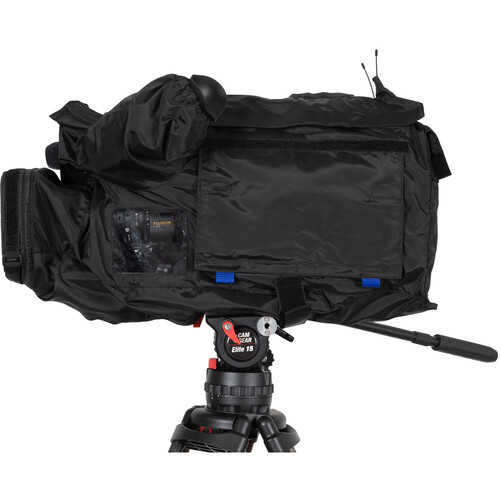 Protect your ENG/EFP camcorder from unpredictable weather with the camRade rainCover ENG/EFP. Crafted from durable waterproof fabric, this cover provides full coverage while ensuring unobstructed access to essential camera functions. The mostly silent fabric minimizes unwanted noise, making it perfect for professional film sets and broadcast environments. Featuring hook-and-loop fasteners and a secure zipper closure, it provides a tight and customizable fit. The removable lens extension accommodates various lens sizes while maintaining optical clarity and sound quality. When not in use, the cover packs neatly into a weatherproof zippered pouch for easy storage and transport.