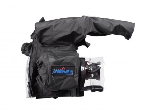 Made of water-resistant fabric with a soft lining the cover minimalizes unwanted sound effects during operation. For the viewfinder, a separate cover with transparent vinyl is supplied.