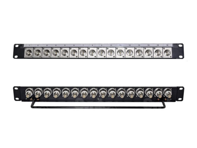 Canare Patch panel BNC 19" 1U -equipped withdouble-sided BNC (F) / BNC (F)Canare BCJ-JRUDK adapters and cable holder on the back. Using the supplied metric screws in pre-drilled holes with pre-cut threads, the connectors are easily manipulatedwithout removing the patch panel from the rack!