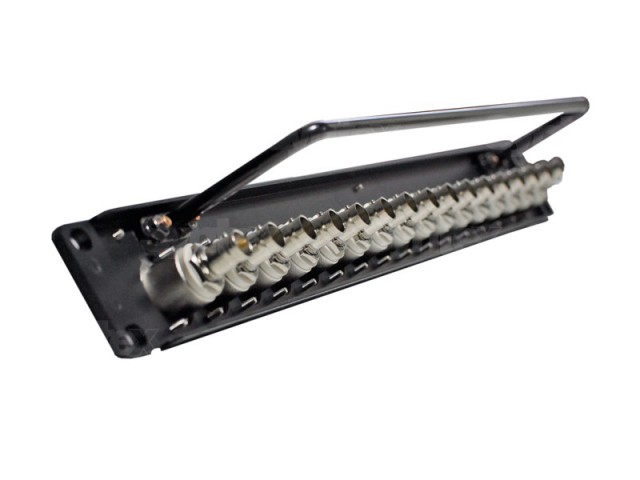 Canare Patch panel BNC 19" 1U - equipped with double-sided BNC (F) / BNC (F) Canare BCJ-JRUDK adapters and cable holder on the back. Using the supplied metric screws in pre-drilled holes with pre-cut threads, the connectors are easily manipulated without removing the patch panel from the rack!