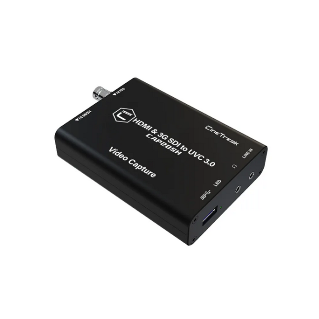The CineTreak CAP20SH combines professional-level performance with plug-and-play simplicity, offering seamless SDI and HDMI to USB 3.1 video capture for live streaming, video conferencing, and production environments. It supports both 3G-SDI (including ST2048 formats) and HDMI inputs up to 2048×1080@60fps, outputting crisp, uncompressed 1080p@60fps over USB 3.1 or MJPEG 1080p@50fps over USB 2.0.