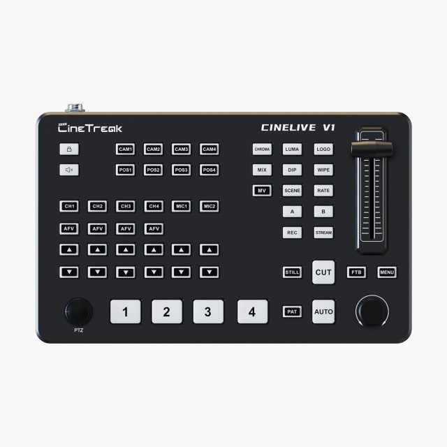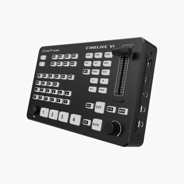 The CineTreak Cinelive V1 is a versatile multi-camera livestream switcher featuring 4 HDMI inputs, professional chroma keying, PTZ control, UVC output, and RTMP support — ideal for live production, streaming, and event broadcasting.